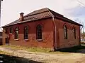 1936 Traditional synagogue architecture with expressionist elements. The building is not oriented strictly from west to east, but from southwest to northeast. It is 11.85 m long and 7.88 m wide, the outer walls are 6.95 m high. In addition to the traditional synagogue architecture, expressionist elements such as an asymmetrically arranged tower on the southwest corner to highlight the main entrance, high, pointed windows and dormers on the hipped roof were used. There were two stars of David on the tower. The single-story main room was to the southeast; in the northwest there was a two-story construction with three rooms on the ground floor (anteroom to the men's bed room, the staircase to the women's bed room above and a heated room in between). There were separate entrances and smaller square windows. The building had eight large windows: three each on the long sides and two in the southeast, between which the Torah shrine stood. The bima was in the center of the room (slightly offset to the rear). Rows of seats were arranged next to the bima and between the bima and the Torah shrine. When it was converted into a warehouse, the windows were closed with boards, the interior was destroyed and a large gate was added in the southeast.[17] After the Second World War it was used as a warehouse for a long time (after renovations) and has been empty since the 1990s. The synagogue has been restored since 2019.