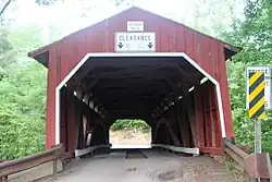 Several covered bridges cross Little Fishing Creek. The Creasyville Covered Bridge (formerly known as the Derr Bridge) is a Queenpost truss covered bridge that was built over Little Fishing Creek in 1881 for a cost of $301.25. It is 44.5 feet (13.6 m) long and crosses the creek north of Millville and Iola. The Jud Christie Covered Bridge No. 95, which is also a Queenpost truss bridge, crosses the creek between Jackson Township and Pine Township. It is 53 feet (16 m) long and was built in 1876 for $239.00. The Sam Eckman Covered Bridge No. 92 crosses the creek between Pine Township and Greenwood Township and was built in 1876 for $498.00. It is 66 feet (20 m) long. The Wanich Covered Bridge No. 69 was built in 1844 for $500.00 and is 98 feet (30 m) long.[24]