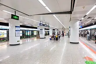 Liuli Qiao station[1] (simplified Chinese: 六里桥站; traditional Chinese: 六里橋站; pinyin: Liùlǐ Qiáo zhàn) is an interchange station on Line 9 and Line 10 of the Beijing Subway.[2] It is located along Guang'an Road to the southwest of Liuliqiao, the intersection between the 3rd Ring Road and the northern terminus of the G4 Beijing–Hong Kong and Macau Expressway.