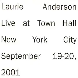 Live in New York is a live album by American performance artist Laurie Anderson released as a double-CD by Nonesuch Records in 2002. The album cover reads Laurie Anderson Live at Town Hall New York City September 19–20, 2001.