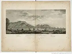 Cap-Haïtien in 1791. Engraving extracted from the Collection of Views of the Main Places of the French Colony of Saint-Domingue by Moreau de Saint-Méry. The Bréda plantation of Haut-du-Cap was located at the foot of the hills, to the left of this illustration.
