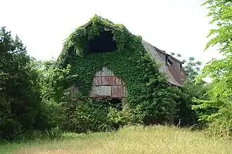The Louis N. Hilger Homestead/Livestock Barn is a historic barn in rural northern White County, Arkansas. It is located on the south side of County Road 374 (Warren Road), west of Providence. It is a two-story wood-frame structure, with a gambrel roof, hay hood, board-and-batten siding, and a concrete foundation. It has a transverse crib layout, with a livestock shed extending along one side. It has two shed-roof dormers on the east side, providing light to the interior. It was built in 1939 to house mules used as draught animals for the Hilger dairy operation, and is distinctive within the county for its use of dormers and its extraordinary height, made possible by its braced-frame construction.[2]