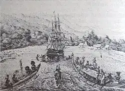 For three years, Freycinet cruised about the Pacific, visiting Australia twice (1818 and 1819), New Guinea (1818-1819), the Mariana Islands (early 1819), Hawaiian Islands (August 1819) other Pacific islands, South America, and other places. Notwithstanding the loss of Uranie on the Falkland Islands during the return voyage, Freycinet returned to France with fine collections in all departments of natural history, and with voluminous notes and drawings of the countries visited.[8]