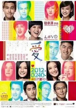 Love is a 2012 Taiwanese-Chinese romance film directed and cowritten by Doze Niu. It stars Zhao Wei, Shu Qi, Mark Chao, Ethan Juan, Eddie Peng, Amber Kuo, Ivy Chen and Doze Niu.[2] Love premiered in the Panorama section of the 62nd Berlin International Film Festival.[3] The film features an ensemble cast, with the stories revealed to be interwoven as the plot progresses.