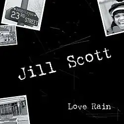 "Love Rain" is the debut single by Jill Scott. Co-written with Vidal Davis, the soul song describes a young couple's summer romance, including sexually graphic lyrics and weather metaphors. Scott employs spoken word as well as breathy and syncopated vocals, while a remix includes a verse by American rapper Mos Def.