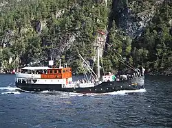 In 1988, the vessel was acquired by Veteranskipslaget Fjordabåten with the a view to preservation. In 1988/89, the vessel was restored to her original appearance with funnel and large saloon below deck forward.