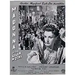 Madonna of the Seven Moons is a 1945 British drama film starring Phyllis Calvert, Stewart Granger and Patricia Roc. Directed by Arthur Crabtree for Gainsborough Pictures, the film was produced by Rubeigh James Minney,[5] with cinematography from Jack Cox and screenplay by Roland Pertwee. It was one of the Gainsborough melodramas of the mid-1940s popular with WW2-era female audiences.