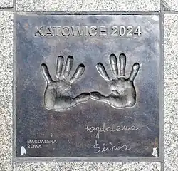 Hand prints and signature at the Avenue of Volleyball Stars, Katowice