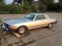 Prominent U.S. 5-mph bumpers on a 1977 Mercedes-Benz 450 SLC