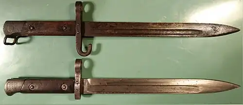 Late in World War I resources were limited and they started manufacturing replacement (German: Ersatz) bayonets. These were fast to produce, cheap and made completely out of metal.[16]