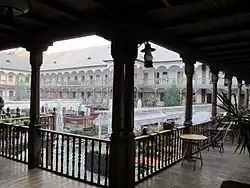 Manuc's Inn (Romanian: Hanul lui Manuc, pronounced [ˈhanu(l) luj maˈnuk]) is the oldest operating hotel building in Bucharest, Romania. It also houses a popular restaurant, several bars, a coffee-house, and (facing the street) several stores and an extensive bar. Its massive, multiply balconied courtyard hosted many performances and fairs and was a popular place for Romanian Television crews to shoot folkloric performances. The hotel and restaurant were refurbished in 2007.[1][2]