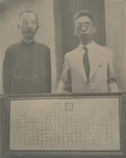 In 1937, the central government of the Republic of China (1912–1949) sent Gan Naiguang (right), a Kuomintang politician, and Mao Zuquan (left) to deliver propaganda and condolences to rally the Chinese troops during the Battle of Shanghai against the Empire of Japan.