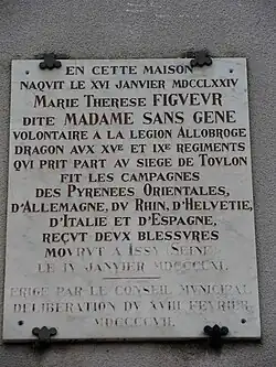 On 16 January 1774 Marie Thérèse Figueur, called Madame Sans-Gêne, was born in this house.