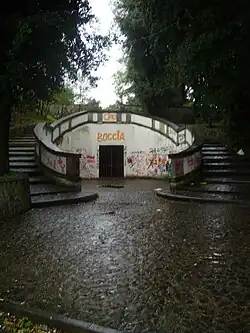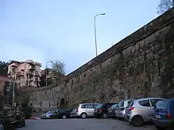 The origin of the toponym "Marino" is unclear. In the 15th and 16th centuries, scholars commonly believed it was linked to a hypothetical Roman villa belonging to Gaius Marius, supposedly located at the site of the current historic center (indeed, archaeological finds compatible with a Roman-era villa were discovered in the 19th century in the Borgo Garibaldi district).[29] Among others, Pope Pius II, in a passage of his "Commentarii" regarding his trip to the Alban Hills in 1462, supported this theory.[30] Other hypotheses include a derivation from "Marianum" in the sense of a place dedicated to the Virgin Mary (the Sanctuary of Santa Maria dell'Acquasanta has rather ancient origins, dating back to around the 6th century),[31] or from "Maranum", related to the "marana" or Patatona ditch, or even to the name of an ancient feudal lord, Marino or Marina, whose memory has been lost.