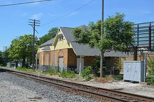The Pittsburgh, Cincinnati, Chicago and St. Louis Railroad first ran through Marion on October 19, 1867, though passengers were handled from a small depot at McClure and 14th Streets, near the railroad crossing of the Big Four Railroad. Work on the depot's foundations began in 1893.[1] The station was built in 1895, delayed almost two years due to prioritizing construction of Anderson's depot due to a limited-time land deal.[2] The company built a new freight house at 520 Lincoln Boulevard in 1902. Passenger service ended around 1956. It would go on to be converted to a liquor store.[3] The station building was listed on the National Register of Historic Places on September 4, 2018.