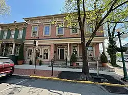 Market Street is a downtown street in Lewisburg, Pennsylvania, United States. It runs for around 1.6 miles (2.6 km), from Main Street, at the Union County/Northumberland County line, in the east to North Fairground Road in the west. It is part of Pennsylvania Route 45. West of its intersection with Derr Drive (U.S. Route 15), it is named West Market Street. From the West Branch Susquehanna River inland, Market Street's cross streets are numbered 2 through 8, with Front Street replacing what was originally 1st Street. These cross streets are named "North" or "South" depending on their location relative to Market Street. Lewisburg's street layout was designed by Ludwig Derr in 1785, and is believed to have been inspired by that of Philadelphia.[1]