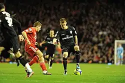 Smith playing for Oldham at Anfield in the FA Cup in 2013
