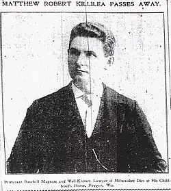 2. ^ 'Proceedings of the State Bar Association of Wisconsin 1903,' Wisconsin Bar Association: 1903, Biographical Sketch of Matthew Robert Killilea, pg. 219