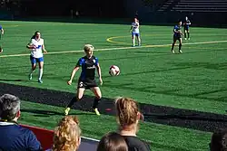 After taking her time to recover from her second ACL injury, Rapinoe returned for the 2008 season and was on the starting lineup in all 22 games for the Pilots. She helped the team secure a 20–2 record scoring five goals and serving 13 assists.[33] Her 13 assists ranked first for the Pilots as well as in the West Coast Conference and she was named West Coast Conference Player of the Year.[34] She was also named a Soccer America First-Team All-American and NSCAA Second Team All-American.[19] Although she had one more season of college eligibility remaining due to her NCAA medical hardship waiver, she opted to enter the Women's Professional Soccer Draft instead.[19][35] Rapinoe's 88-point career, including 30 goals and 28 assists, ranks tenth in the school's history despite her playing only 60 games.[19]