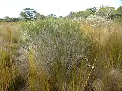 Robin redbreast bush occurs in the Geraldton Sandplains, Jarrah Forest, Swan Coastal Plain and Warren biogeographic regions of Western Australia. It grows in sandy soil in swampy areas.[8][9]