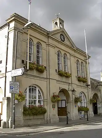 Melksham Town Hall is a municipal building in the Market Place in Melksham, Wiltshire, England. The structure, which was built as a cheese market and is now the home of Melksham Town Council, is a Grade II listed building.[1]