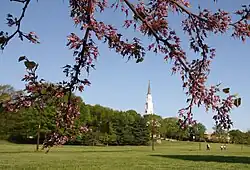 Memorial Chapel is a non-denominational building on the campus of the University of Maryland, College Park, constructed to honor those associated with the university who had lost their lives serving in the United States Armed Forces.[3] The building, designed by Henry Powell Hopkins, actually is made up of three chapels: the Main Chapel, the West Chapel, and the Chapel of the Blessed Sacrament.[4] A Vietnam Veterans Memorial was constructed on the Chapel grounds in 1988.[5][6] The steeple of the chapel is the highest point on campus.[1]
