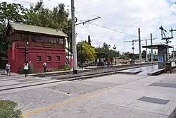 Mendoza station as a tram stop in 2015. The old semaphore signals are visible at background