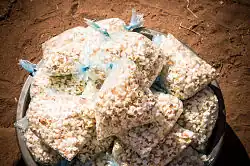 Corn in Mexico is not only eaten, but also drunk as a beverage. Corn is the base of a hot drink called atole, which is then flavored with fruit, chocolate, rice or other flavors. Fermented corn is the base of a cold drink, which goes by different names and varieties, such as tejuino, pozol and others. Aguas frescas are flavored drinks usually made from fruit, water and sugar. Beverages also include hibiscus iced tea, one made from tamarind and one from rice called horchata. One variant of coffee is café de olla, which is coffee brewed with cinnamon and raw sugar.[63] Many of the most popular beverages can be found sold by street vendors and juice bars in Mexico.