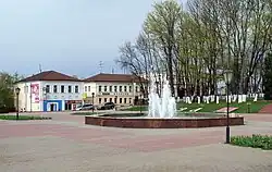 Weinberg arrived in the Soviet Union with few personal belongings aside from some of his musical manuscripts and family photographs.[32] His poor health excluded him from consideration for military service.[4] It is believed that before he settled in Minsk, he first journeyed through Brest, then Pinsk, and Luninets; he composed his Piano Sonata No. 1 in the latter town, which he nicknamed the work after. Weinberg and other recent Polish immigrants were granted Soviet citizenship by local authorities in Minsk. This permitted him the privilege to enroll at the Minsk Conservatory. He became one of Vasily Zolotarev's composition students.[32] Weinberg also studied counterpoint, music history, harmony, orchestration, and conducting.[33] His classmates included Eta Tyrmand, Genrikh Wagner, and Ryszard Sielicki. According to Lev Abeliovich, Weinberg was considered the best student.[34] He settled into a room at the conservatory's dormitory. His roommate was Alexei Klumov, a pianist and alumnus of Heinrich Neuhaus. Klumov gave lessons in the Russian language to Weinberg, who quickly became fluent.[35] After school, Weinberg worked as a pianist. He sometimes partnered in duet with Tyrmand, with whom he played medleys of themes from popular American films.[36]