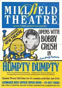 The first production was the pantomime Humpty Dumpty starring Bobby Crush and set the trend of producing an annual Christmas pantomime that continues today.