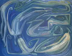 Miluše Poupětová (* born Kautznerová, July 22, 1963 in Vlašim) is a Czech artist. She also teaches students of applied art at VOŠUP SUPŠ (Industrial Art College and Secondary School) in Prague. Her paintings are based on expressionism and monumental painting, and include abstract as well as figural elements. Her paintings follow her individual path to her soul, she is inspired by the physical experience of her own femininity as well as by oriental, Christian and psychoanalytic philosophy. The initial dark and exalted expressiveness of her early art work was gradually changed by brighter colours, well-thought-out compositions, more harmony and a more detached point of view.