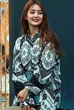 Before Minnie's debut, she became a model for the local skin care line Celeb's Secret (Korean셀럽시크릿) alongside bandmates Yuqi and Shuhua.[50][51] In July 2022, Webtoon Thailand selected Minnie as their model to promote their new campaign, where Minnie picked three new stories to promote.[52][53] It was later reported that the three titles were ranked at the top of the platform, and had the highest sales revenue at the time, as well as reaching over 50 million views of the video of the campaign in the span of seven days.[54] On the same month, Minnie was announced as MAC's new muse.[55] In August 2022, Minnie was announced as the muse for the South Korean clothing brand Laura Laura (Korean로라로라).[56][57] In September 2022, clothing brand ACBF selected Minnie alongside band member Yuqi as their new models.[58] In November 2022, Minnie was announced as mode for the Italian clothing brand Duvetica.[59] In December of the same year, Minnie was one of the celebrities who advertised for the South Korean traveling platform How About Here (Korean여기어때) and its partner at the time, Melon.[60] Followed with her advertisement for the South Korean cosmetics brand 3CE.[61] In February 2023, she became the muse for the South Korean brand J.Estina handbag alongside bandmate Miyeon.[62] In August of the same year, she was selected as the new ambassador for Prada's Italian fashion brand Miu Miu.[63]