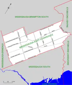 3. ^ Mississauga East - Cooksville, Elections Canada. "2015 Federal Election Boundaries".