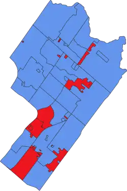 Winning party in each polling division of Mississauga East—Cooksville at the 2025 Ontario general election