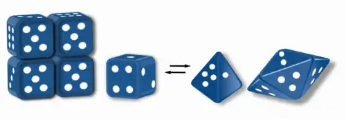 Morpheeins are proteins that can form two or more different homo-oligomers (morpheein forms), but must come apart and change shape to convert between forms. The alternate shape may reassemble to a different oligomer. The shape of the subunit dictates which oligomer is formed.[1][2] Each oligomer has a finite number of subunits (stoichiometry). Morpheeins can interconvert between forms under physiological conditions and can exist as an equilibrium of different oligomers. These oligomers are physiologically relevant and are not misfolded protein; this distinguishes morpheeins from prions and amyloid. The different oligomers have distinct functionality. Interconversion of morpheein forms can be a structural basis for allosteric regulation, an idea noted many years ago,[3][4] and later revived.[1][2][5][6] A mutation that shifts the normal equilibrium of morpheein forms can serve as the basis for a conformational disease.[7] Features of morpheeins can be exploited for drug discovery.[1][5][8] The dice image (Fig 1) represents a morpheein equilibrium containing two different monomeric shapes that dictate assembly to a tetramer or a pentamer. The one protein that is established to function as a morpheein is porphobilinogen synthase,[2][9][10] though there are suggestions throughout the literature that other proteins may function as morpheeins (for more information see "Table of Putative Morpheeins" below).