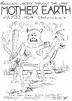 The first issue of Mother Earth appeared in 1933. It was created to honor Goldman’s original magazine and the work of early anarchists. The title was chosen by Jo Ann Wheeler, who stated to her son and granddaughter that it paid tribute to the earlier Mother Earth.