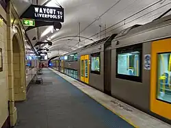 Museum railway station is a heritage-listed[1] underground commuter rail station that is located on the City Circle route at the southern end of Hyde Park in the Sydney central business district of New South Wales, Australia. The station is served by Sydney Trains' T2 Leppington & Inner West Line, T3 Liverpool & Inner West Line and T8 Airport & South Line. The station is named after the nearby Australian Museum. It was added to the New South Wales State Heritage Register on 2 April 1999.[4]