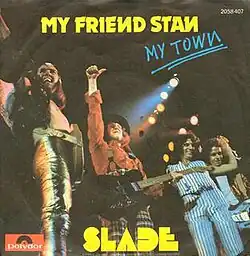 "My Friend Stan" is a song by the British rock band Slade, released in 1973 as the first single from the band's fourth studio album Old New Borrowed and Blue.[1] It was written by lead vocalist Noddy Holder and bassist Jim Lea, and produced by Chas Chandler. It reached No. 2 in the UK, spending eight weeks on the chart.[2] The single was certified UK Silver by BPI in October 1973.[3]