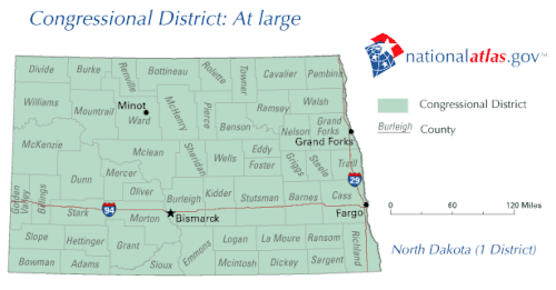 North Dakota's at-large congressional district is the sole congressional district for the state of North Dakota. Based on size, it is the eighth largest congressional district in the nation.