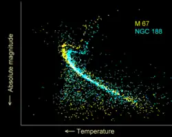 - ^ a b VandenBerg, D. A.; Stetson, P. B. (2004). "On the Old Open Clusters M67 and NGC 188: Convective Core Overshooting, Color-Temperature Relations, Distances, and Ages". Publications of the Astronomical Society of the Pacific. 116 (825): 997–1011. Bibcode:2004PASP..116..997V. doi:10.1086/426340.