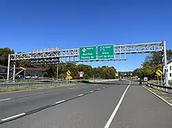 Over the years, several traffic circles have been modified or replaced along Route 73. The Marlton Circle at Route 70 in Marlton was modified in 1974 to allow Route 73 to run directly straight through the circle. This circle became known for traffic backups and was replaced with an interchange.[16] Construction on this interchange, which cost $31 million, began in April 2009.[7] In May 2010, the circle was eliminated with a temporary at-grade intersection constructed while the Route 73 bridge over Route 70 was being built.[17] The interchange was completed in June 2011.[5] A traffic circle that existed at the intersection of Route 38 and Route 41 in Maple Shade Township was removed by the 1960s and replaced by the current set of interchanges.[18][19] In addition, the Berlin Circle in Berlin was replaced by an at-grade intersection between August 2005 and September 2006 at a cost of $73 million.[20]