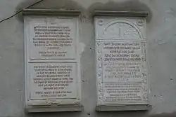 Plaques at Zolochiv Castle commemorating victims of the massacre