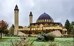 Nalchik (Russian: Нальчик, IPA: [ˈnalʲtɕɪk]; Kabardian: НалщӀэч, romanized: Nalṣ̂ăčʼ [naːɮɕʼakʲ]; Karachay-Balkar: Нальчик[13] or Налчыкъ[14][15], romanized: Nalçik or Nalçıq [naltʃɯk]) is the capital city of Kabardino-Balkaria, Russia, situated at an altitude of 550 meters (1,800 ft) in the foothills of the Caucasus Mountains; about 100 kilometers (62 mi) northwest of Beslan (Beslan is in the Republic of North Ossetia–Alania).[16] It covers an area of 131 square kilometers (51 sq mi). Population: 247,054 (2021 Census);[11] 240,203 (2010 Census);[17] 274,974 (2002 Census);[18] 234,547 (1989 Soviet census).[19]