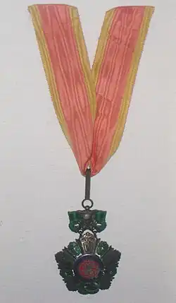 The National Order was modeled after the French National Order of the Legion of Honour, and as such it was issued in five degrees:[1][2]
