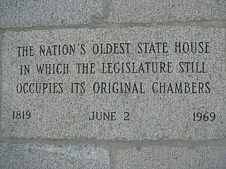 The first session of the General Court began in 1819. The State House is the oldest state capitol in which both houses of the legislature meet in their original chambers. (The current chamber of the Massachusetts Senate is older but was originally used by the House of Representatives.)