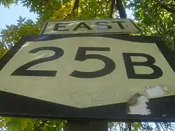 New York City did not have posted routes until mid-December 1934. Several routes that had ended at the eastern city line (the QueensNassau County border), such as NY 25, were extended westward at this time.[2] By the following year, NY 25B was assigned to the portion of Hillside Avenue between Braddock Avenue in Queens and Jericho Turnpike in Westbury, serving as a northerly alternate route of NY 25 between the two locations.[3] The alignment of the route has not been changed since that time.[1] The junction at the east end of the route was originally an at-grade intersection.[8] It was reconfigured into an interchange c. 1967.