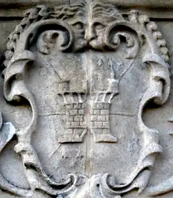 - ^ As visible impaling Pyne (Gules, a chevron ermine between three pine apples or (Vivian, 1895, p.632)) on mural monument to Melior Hooper (née Pyne) (d.1703), (mother of Sir Nicholas II Hooper) in Upton Pyne Church [1]; Also visible on Queen Anne's Walk in Barnstaple and on a small enamelled plaque now on the staircase of the Barnstaple Guildhall, originally affixed to the wall of Queen Anne's Walk; These are the arms given in Burke's General Armory, 1884, p.505, for "Hooper"