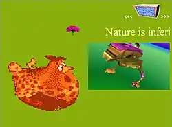 In the 1990s, after the completion of her VR project, Stenger worked on VRML works and developed online art projects that are early examples of web cinema. My Faux Cinema’s website (1998–2003) was a project composed of web pages with animated gifs, java applets, open source audio files, textual parts written by Stenger or sampled from the Internet. It included VRML movies, web books and “faux films”. Stenger's web books, To Dream or Not to Eat (1998), California Trilogy (1996-2000), Nature (2000), Nanfei in Waspland (2000) show her innovative spirit.A web book is a kind of book with a story, a cover, an introduction, a conclusion, and a narrative of seven to twelve pages. The “faux films”, Fresh! (2000) and Bitchery (2001), are stylistic jokes. They mimic cinema moving images through javascripts.