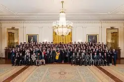 Collectively, the Bison have won 37 conference championships, and 18 national championships. They were selected as NCAA College Division II champions by polling three times (1965, 1968, 1969), won the NCAA Division II National Football Championship five times (1983, 1985, 1986, 1988, 1990), and have won the NCAA Division I Football Championship ten times in fourteen seasons (2011, 2012, 2013, 2014, 2015, 2017, 2018, 2019, 2021, 2024).[6] The 2019 Bison are the first of any Division I team since 1894 Yale to finish 16–0. From 2012 to 2014, the Bison had a formerly FCS record of 33 straight wins (which is tied for the third longest in modern NCAA history). They subsequently had a 39-game winning streak that ran from 2017 to 2020.[7]