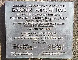 Plaque from the opening of the Baroon Pocket Dam